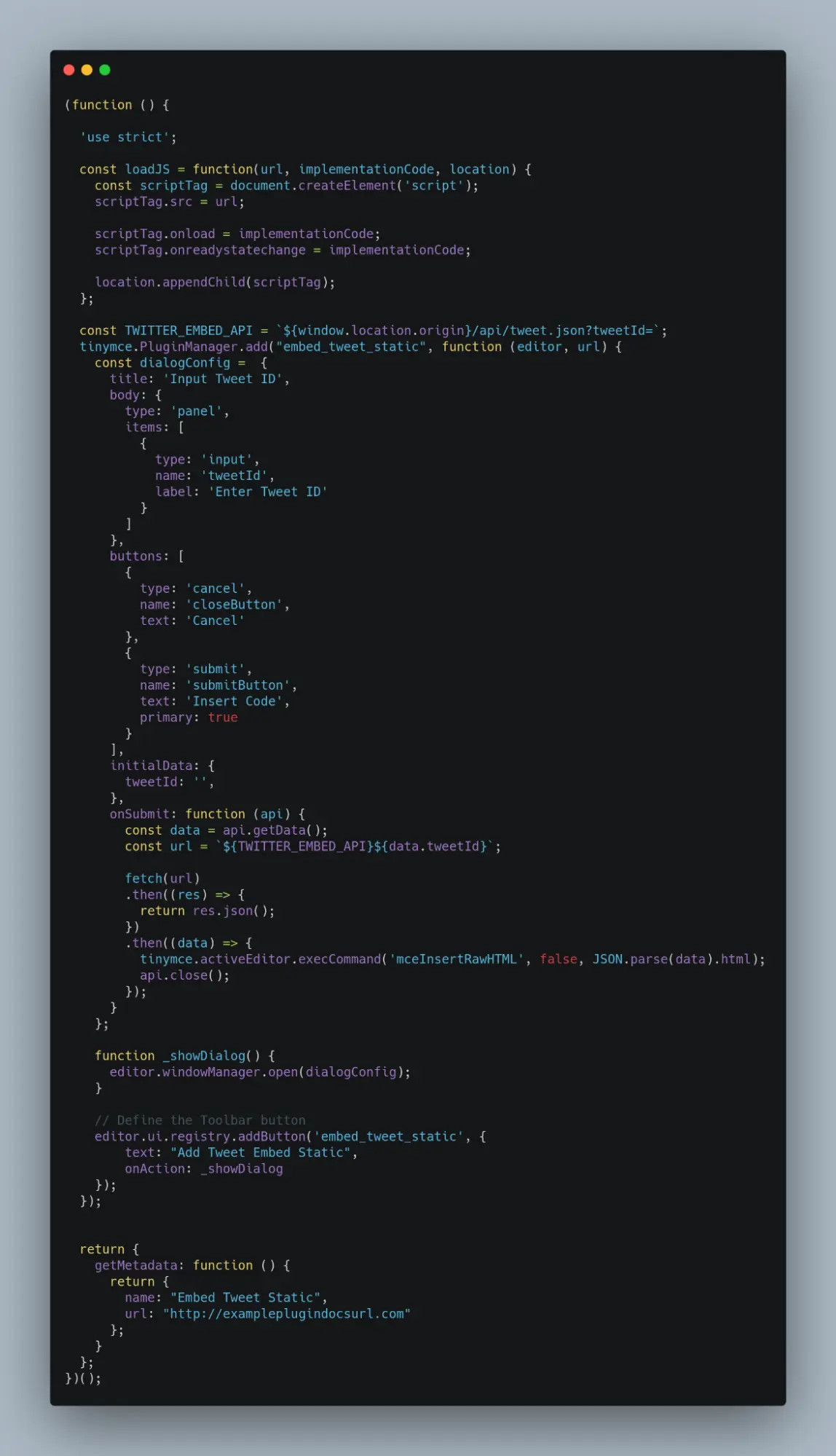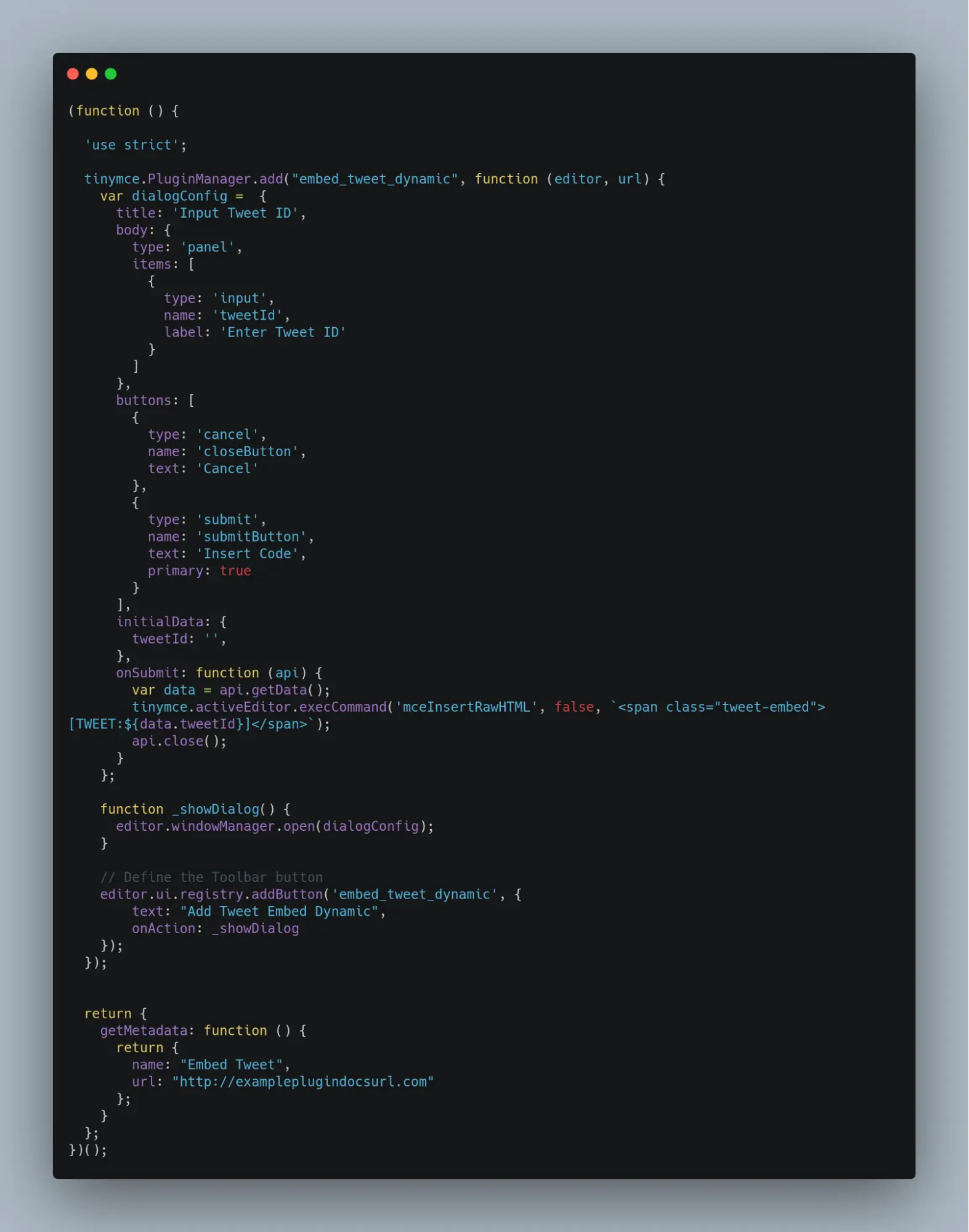 In this article, we will build an RTE plugin for TinyMCE that enables authors to easily embed Tweets (aka X posts) to site pages. This plugin uses Tweet ID as the only input required to render Embed Tweets either by inserting static HTML or dynamically at runtime.