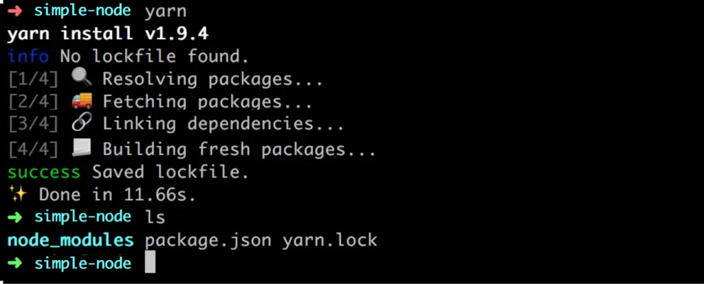 - In our example, I will use Yarn to manage my package.json file and to assist me in building my application.