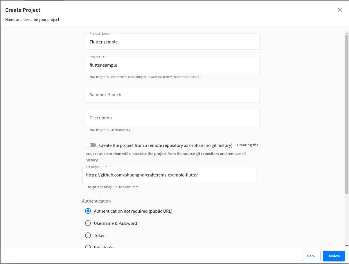 Git Repo URL: https://github.com/phuongnq/craftercms-example-flutter