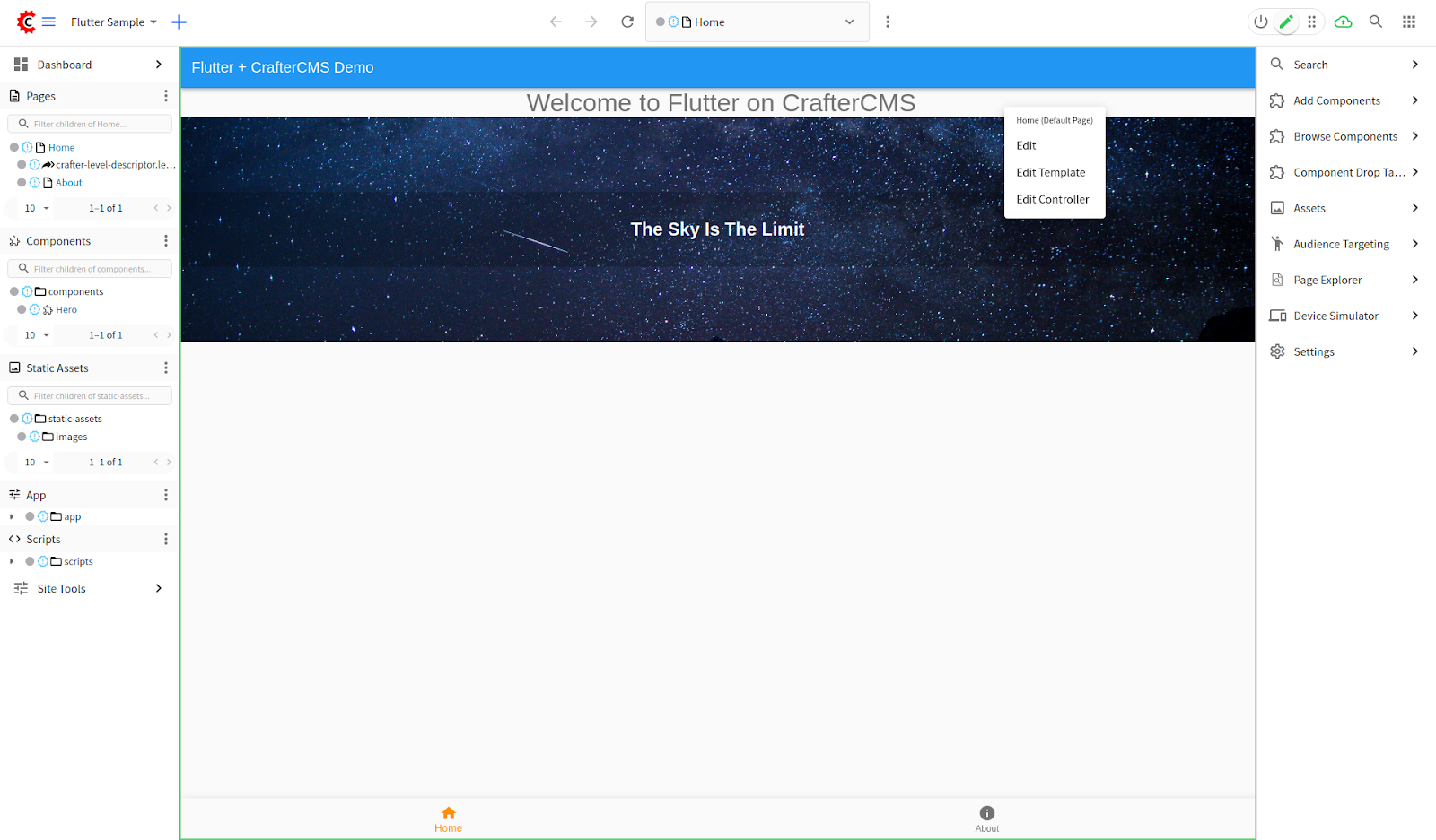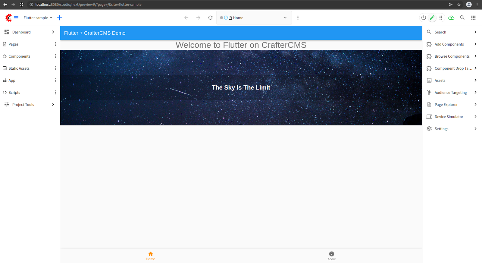 For evaluation purposes, we have created a CrafterCMS project integrated with Flutter. You can easily create a new project with this blueprint and check out how it works.