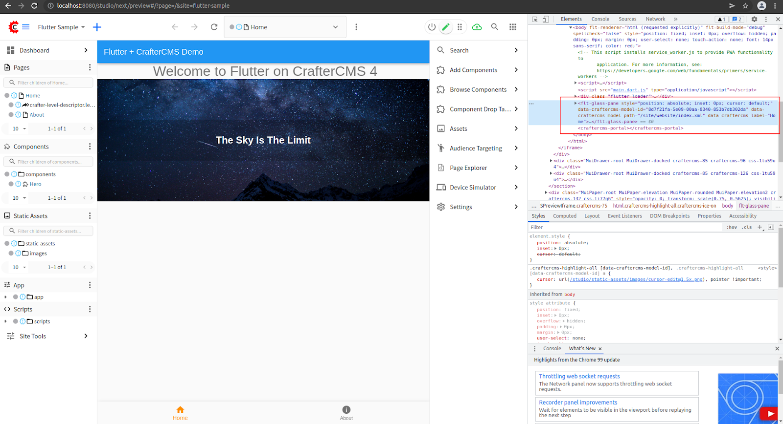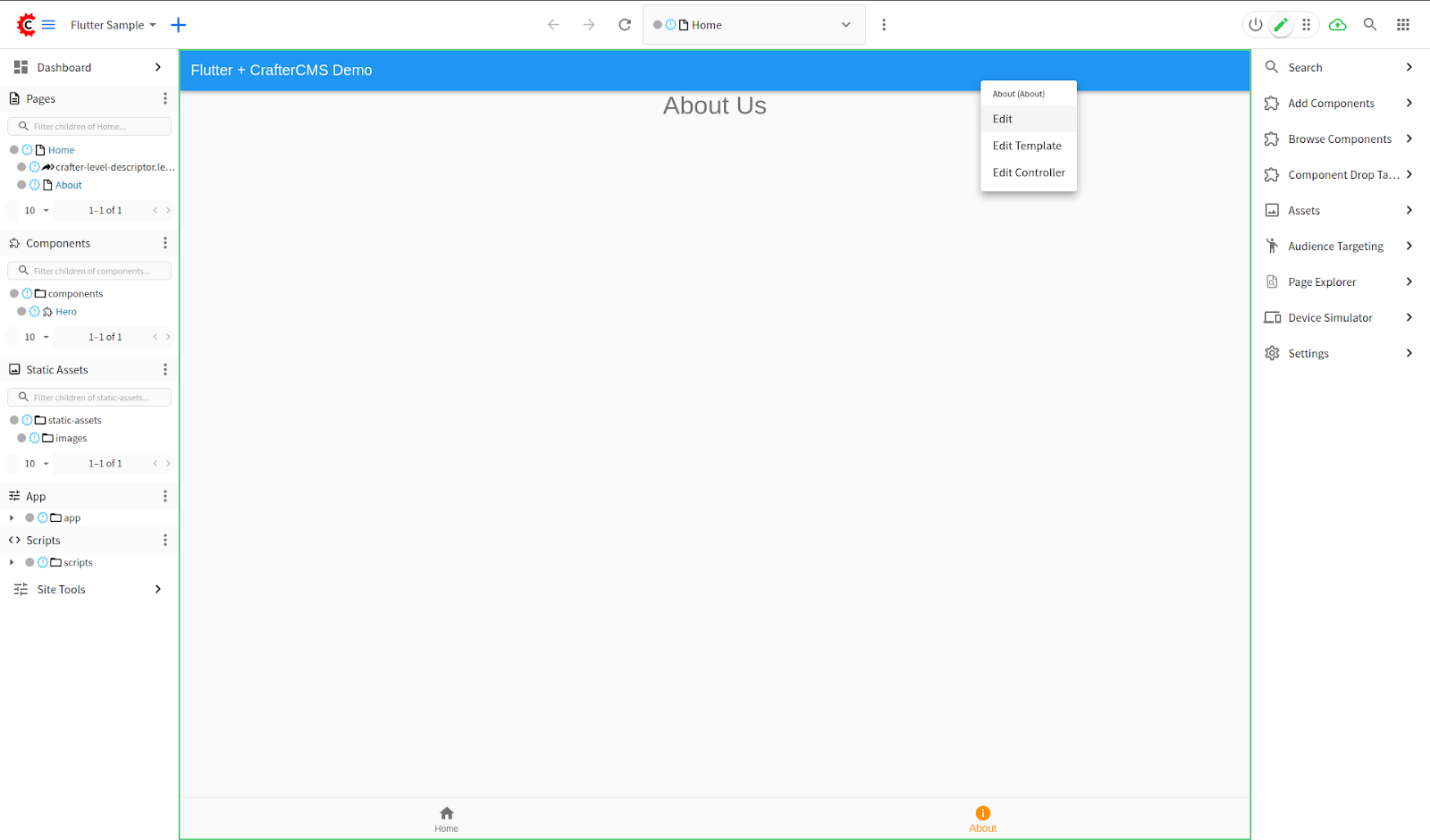CrafterCMS is a modern content management platform, with a Git-based content repository that supports DevOps for content-managed applications. CrafterCMS provides a full-featured editing toolset for content authors combined with comprehensive headless CMS capabilities for developers, and this combination is quite unique. In this tutorial, you will learn how to create a content-rich, Flutter-based web application with in-context editing and other easy to use authoring capabilities.