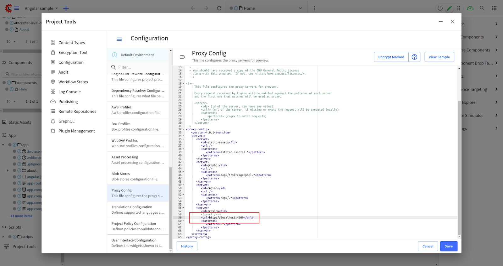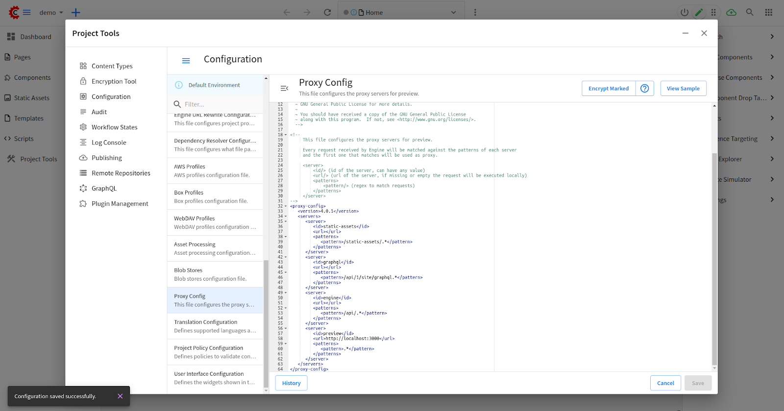Project Tools > Configuration > Proxy Config