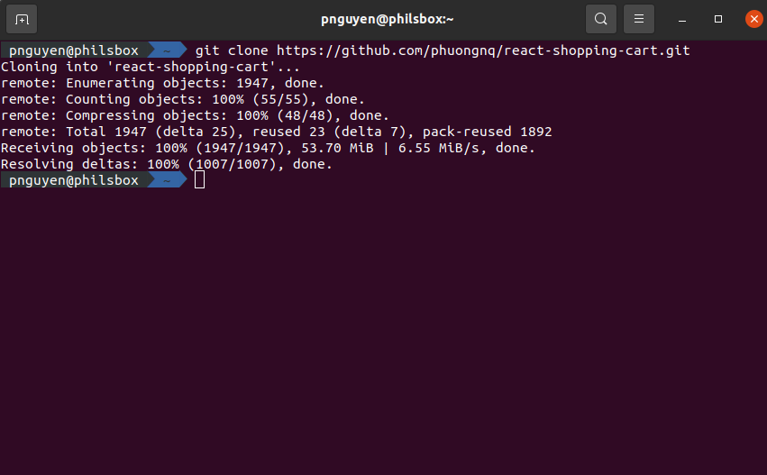 - On your local machine clone the react-shopping-cart project: https://github.com/phuongnq/react-shopping-cart