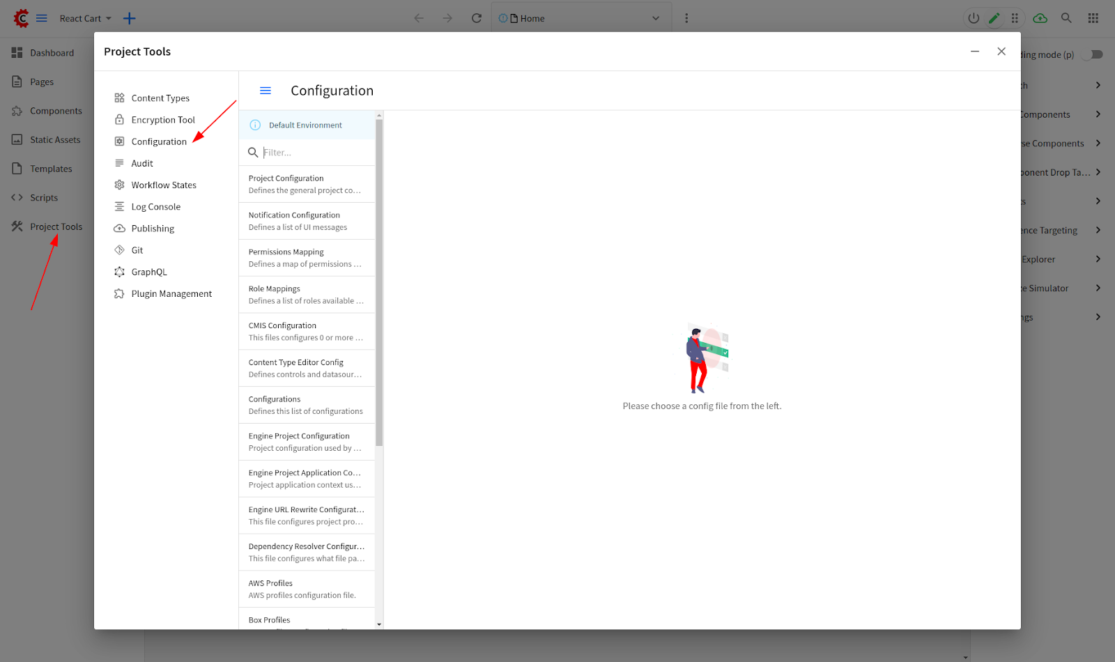 - Open the Project Tools by clicking the Project Tools button in the sidebar and then clicking Configuration.