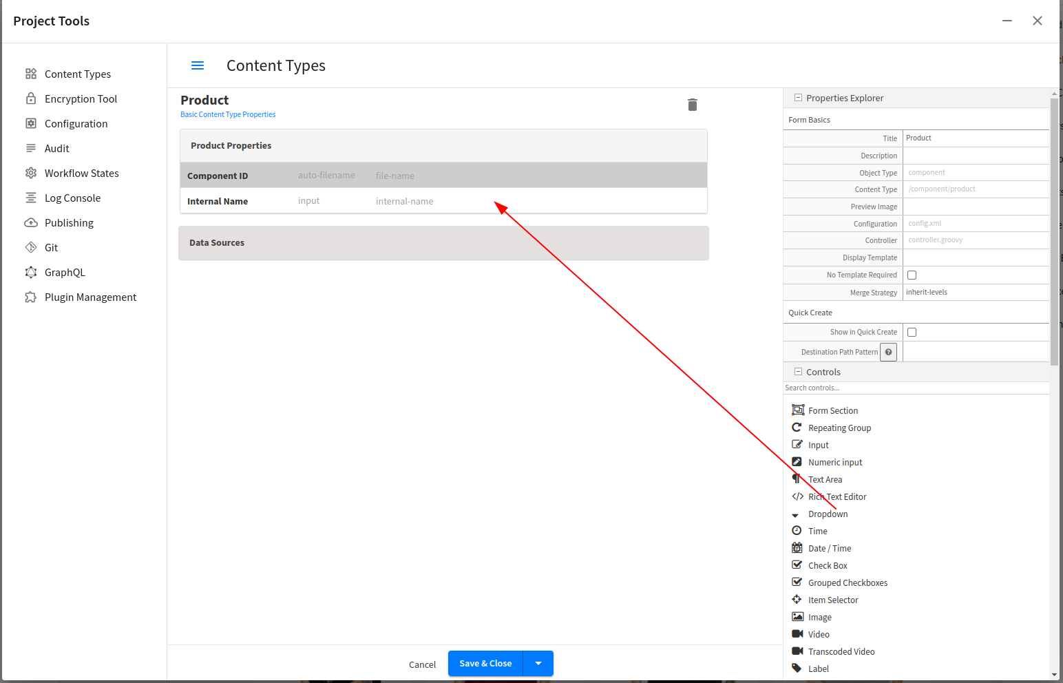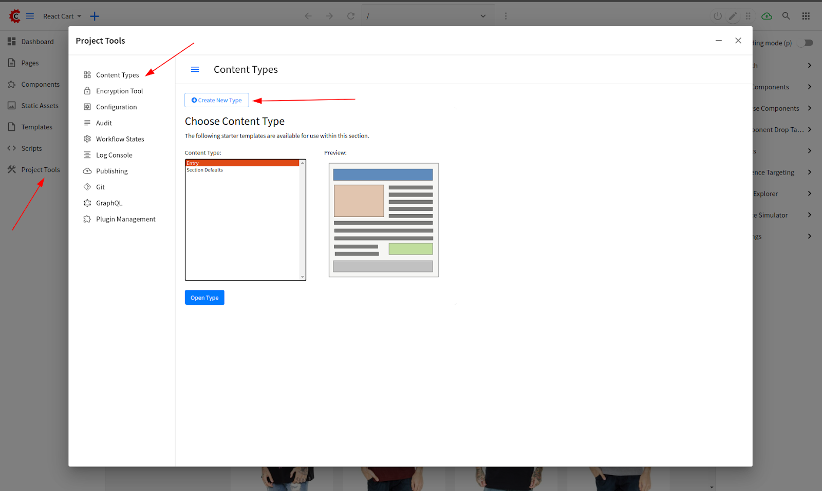 - Open the Content Types administration tool by opening the Project Tools and clicking on the Content Types item in the sidebar then clicking Create New Type button