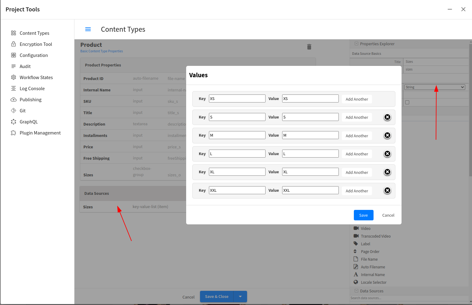 It’s clear that each product has a title, a description, a style, a price, and so on. To model these in the CMS we must add a new content type.