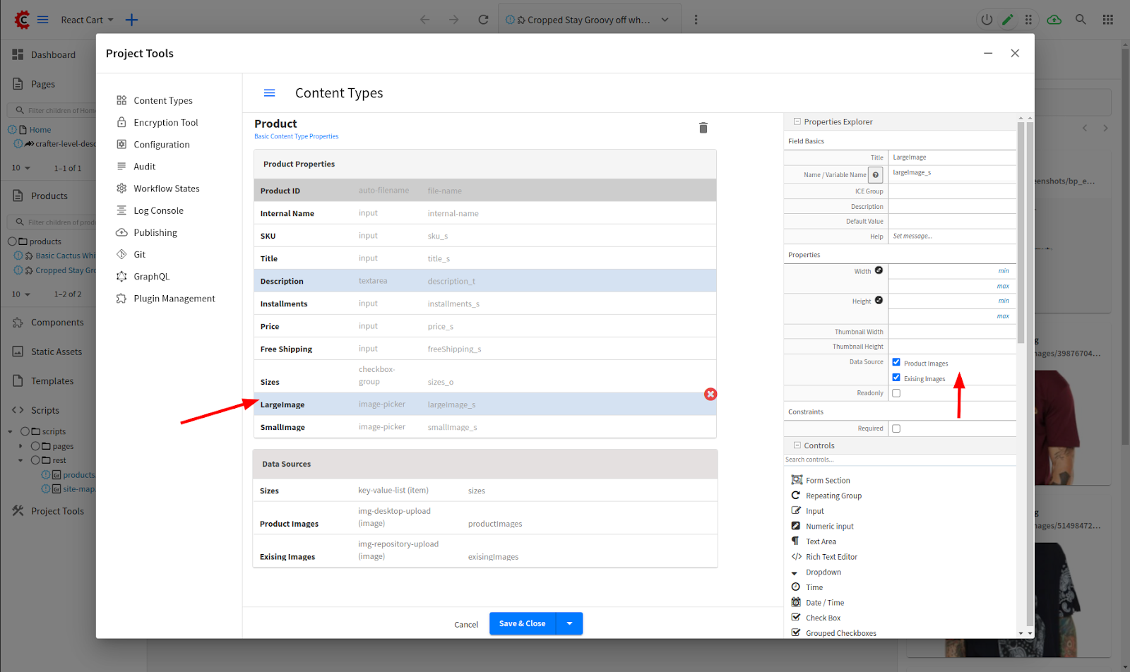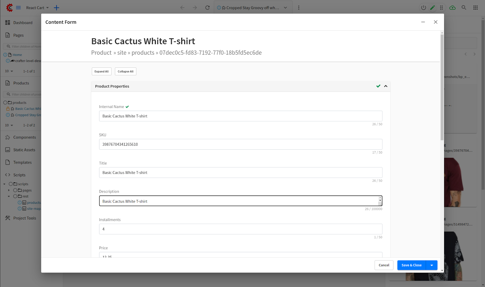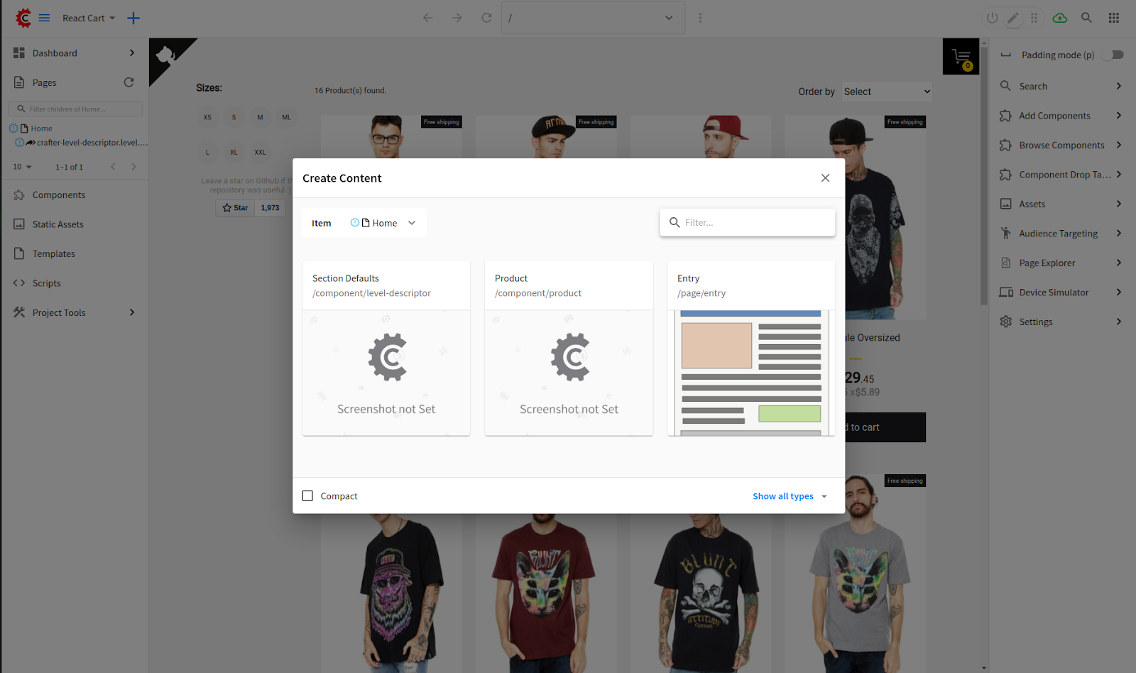 Step 3: Model a product in CrafterCMS. We have an application and we have a CMS. It’s time to connect them. Here we’ll learn how to model content and we’ll do some minor configurations along the way to customize the Studio UI for the use case.