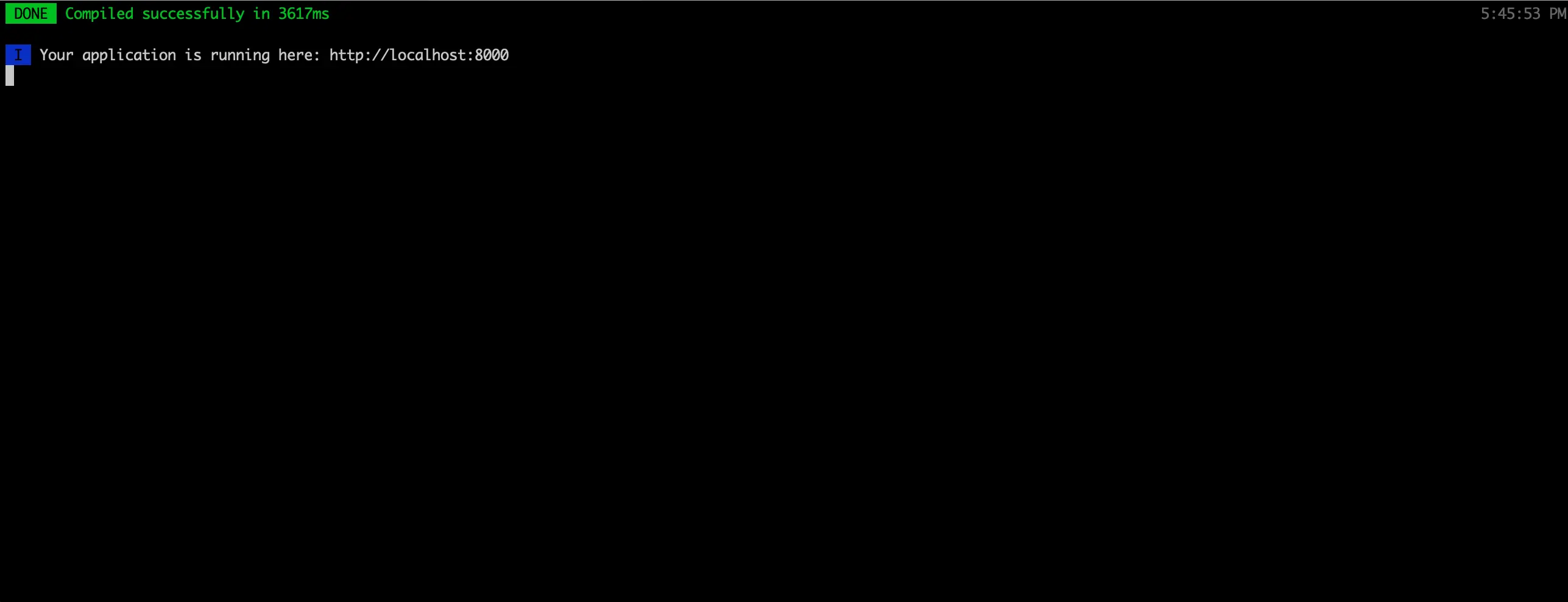 - Run the Vue application by executing yarn start.