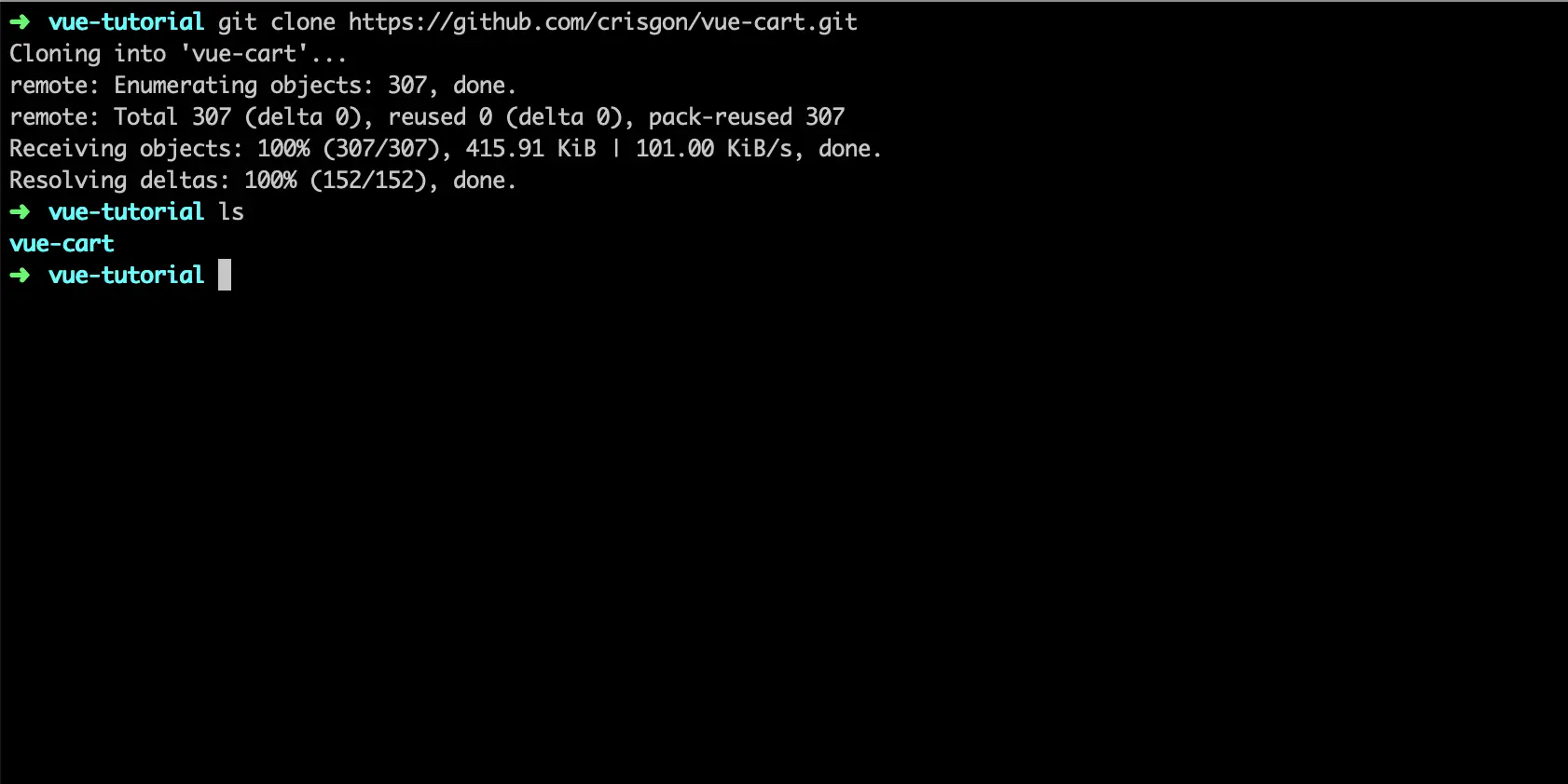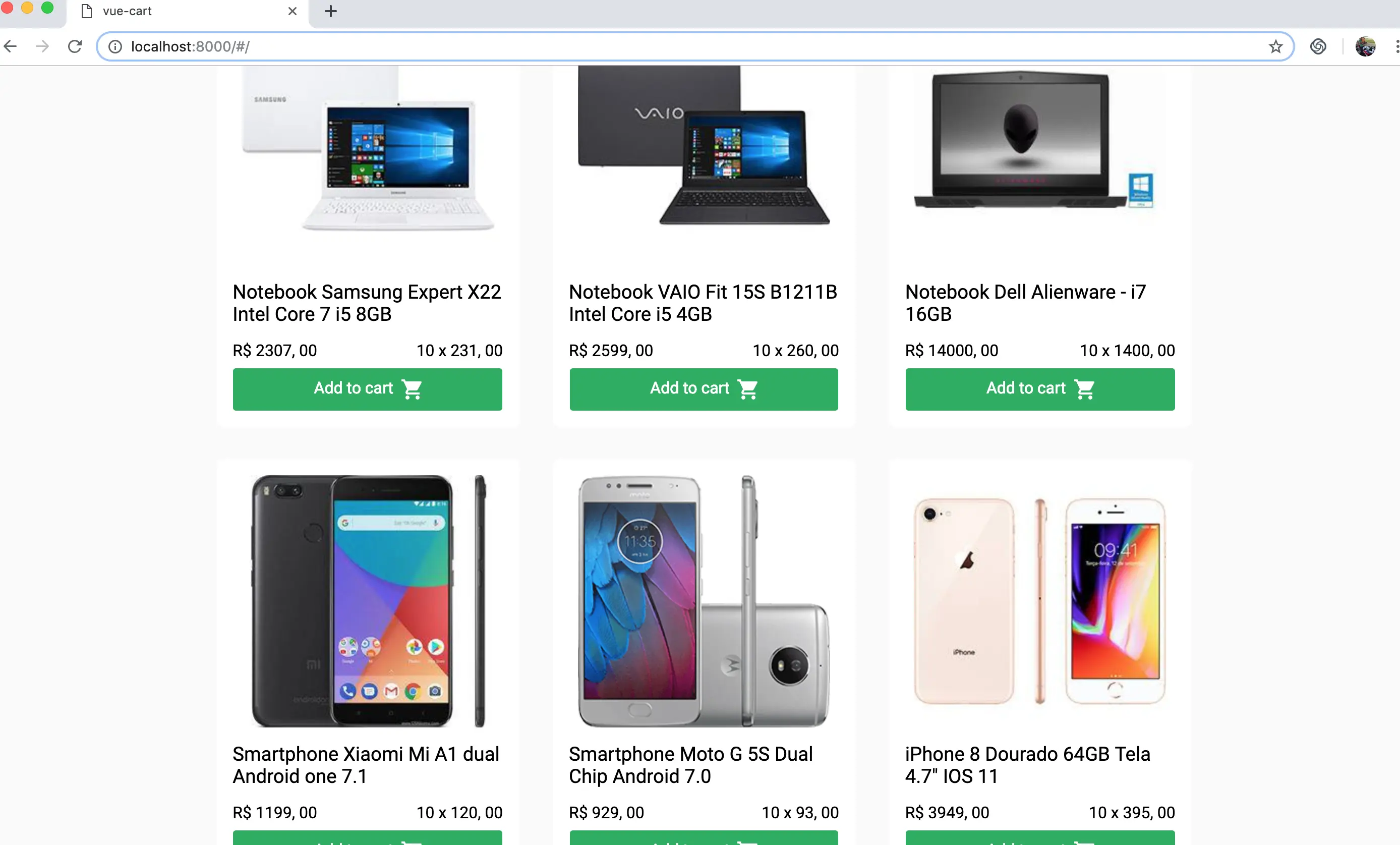 - On your local machine clone Cristiano Gonçalves's project: https://github.com/crisgon/vue-cart