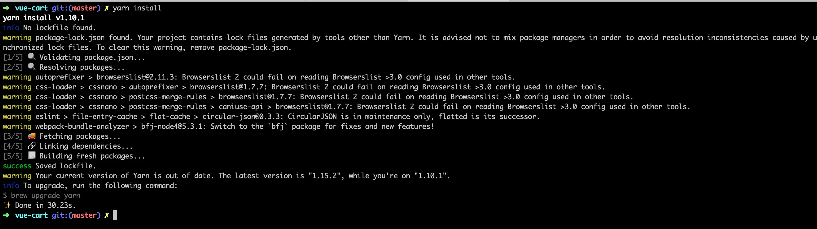 - Change directory into the vue-cart folder that was created and run yarn install