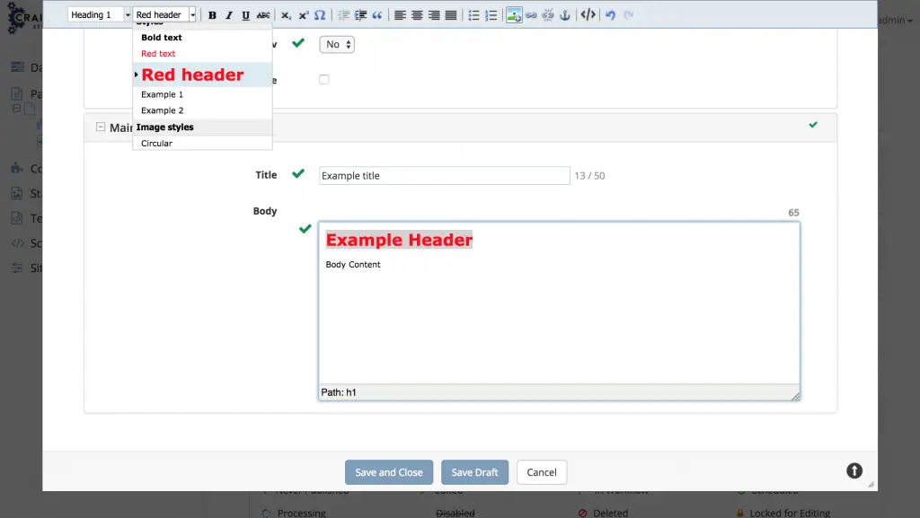 CrafterCMS’s Rich Text Editor (RTE) applies your styles right in line. There’s no need to save and preview before you can see your changes. Along with that, administrators want to be able to configure what styles authors can apply.