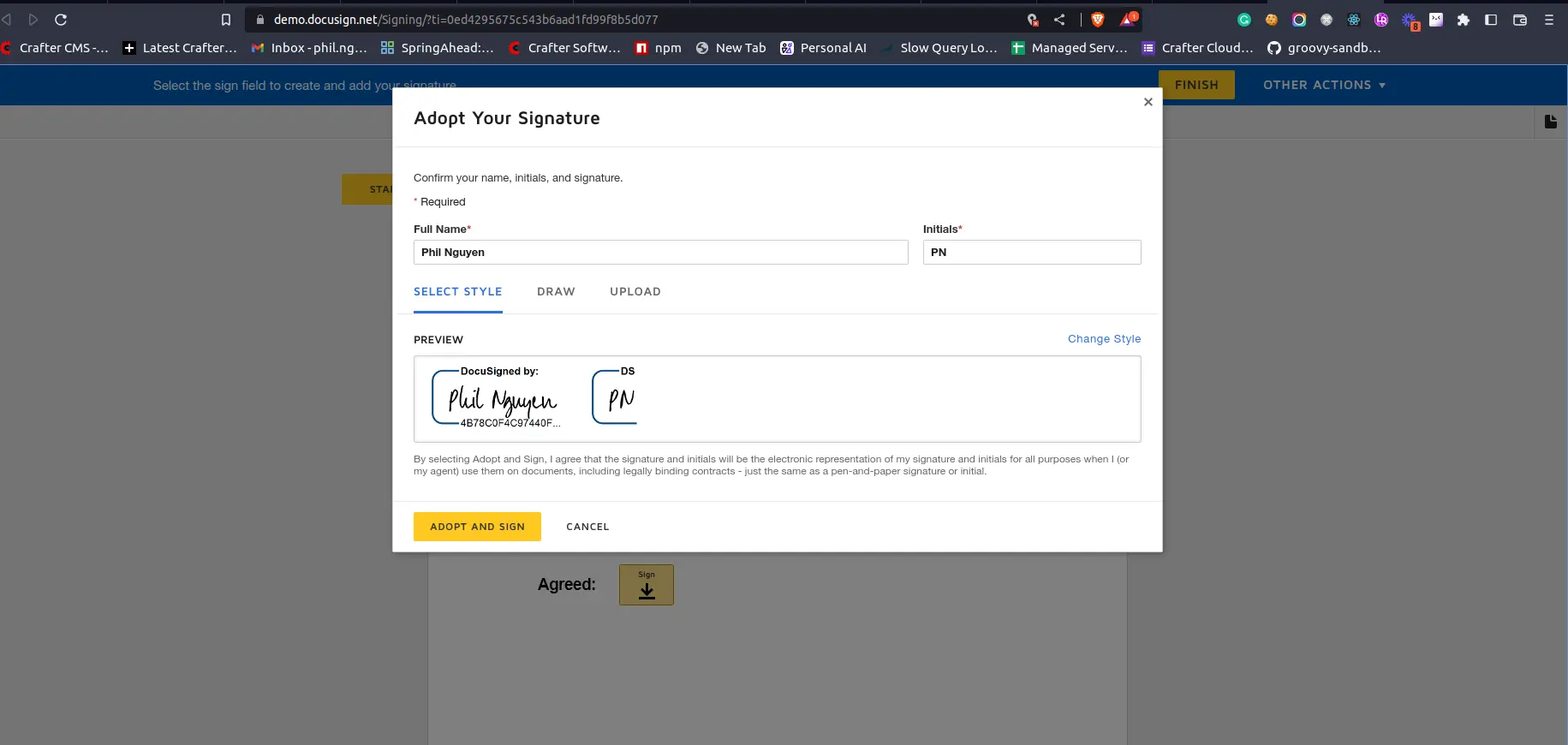 In this tutorial, we demonstrated how you can easily integrate DocuSign with CrafterCMS, and how you can build sites and apps with end-user functionality for signing documents directly. This integration saves time and streamlines the document signing process, and is especially useful for applications such as customer portals, partner portals, employee onboarding experiences, and more. Moreover, this pattern can be extended easily to meet applications that require more sophisticated workflows.