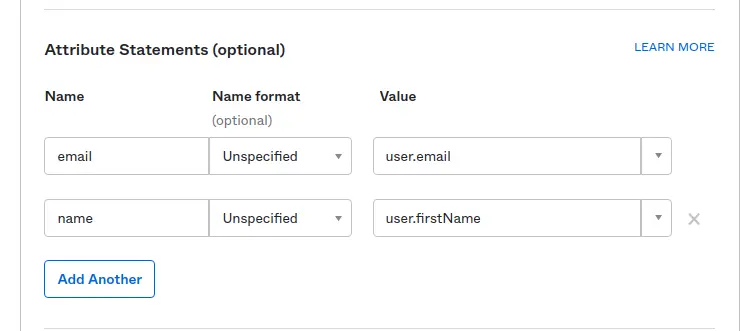 - <attributes> tag: We added 2 attributes: email and name. They are configured in Okta as in previous steps.